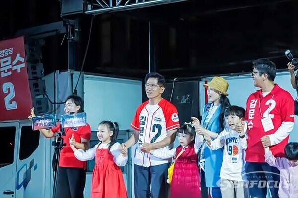특히 김 후보는 부인 설난영 여사와 함께 딸, 사위, 손자, 손녀 등 온 가족이 동행해 화목한 가족상을 부각시켰다. 유세 현장에는 어린이들도 참여해 따뜻한 분위기를 자아냈으며, 이에 지지자들의 뜨거운 박수가 이어졌다.