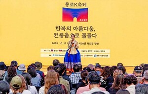 [시사포커스 / 유우상 기자] 서울 종로구와 종로문화재단은 17일과 18일 양일간 광화문광장 일대에서 ‘종로K축제’를 개최하고 있다. 이번 축제는 한복 중심이던 기존 행사를 한식, 한글, 한지, 한국화, 민속놀이, 공예, 풍속 등으로 확장해 한류 전반을 아우르는 K문화 축제로 업그레이드했다.17일 오후 개막식에 앞서 열린 공연에서는 종로 지역에서 전통춤의 맥을 이어가는 예술인들이 ‘한복의 아름다움, 전통춤으로 물들다’를 주제로 무대에 올랐다. 종로향연, 처용무, 북청사자춤, 여인과 한량, 다함께 한마당 등 다채로운 전통공연이 펼쳐지