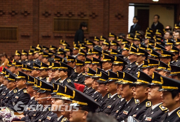 [시사포커스 홍금표 기자] 교정의 날 기념식 참석자들이 28일 오후 정부과천청사에서 열린 법무부 제69주년 교정의 날 기념식에서 황교안 법무부 장관의 기념사를 듣고 있다.