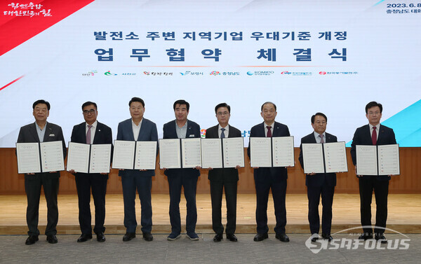 [대전충남본부 / 권승익 기자] 충청남도가 8일 지역건설기업의 대규모 발전사업 참여를 늘리기 위해 발전소가 있는 4개 시·군 및 발전 3사와 ‘발전소 주변 지역기업 우대기준 개정’ 업무협약 체결식을 개최했다.