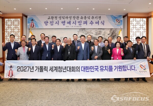 이날 수여식에서 오성환 시장은 유흥식 추기경에게 명예시민패를 전달하고 2027년 가톨릭 세계청년대회의 대한민국 유치를 기원하는 퍼포먼스를 함께 진행해 그 의미를 더욱 드높였다.