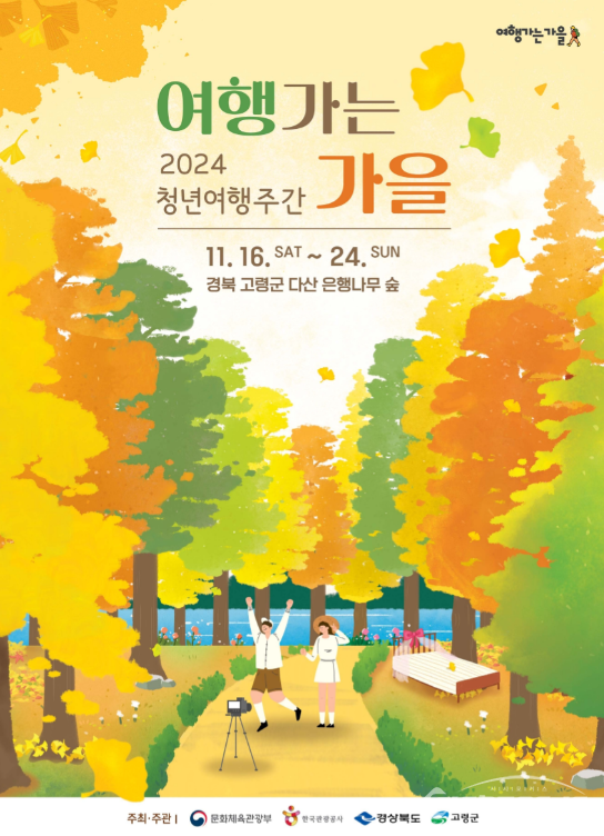 이에 맞춰 고령군은 ‘청년여행주간’을 설정해 가을여행의 명소 ‘다산 은행나무숲’ 일원을 대상으로 9일간 관광홍보 캠페인을 펼치게 됐다.