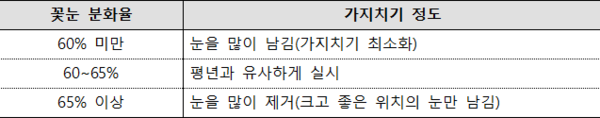 이상 기후로 인한 꽃눈 분화율 감소, 적절한 가지치기 필요